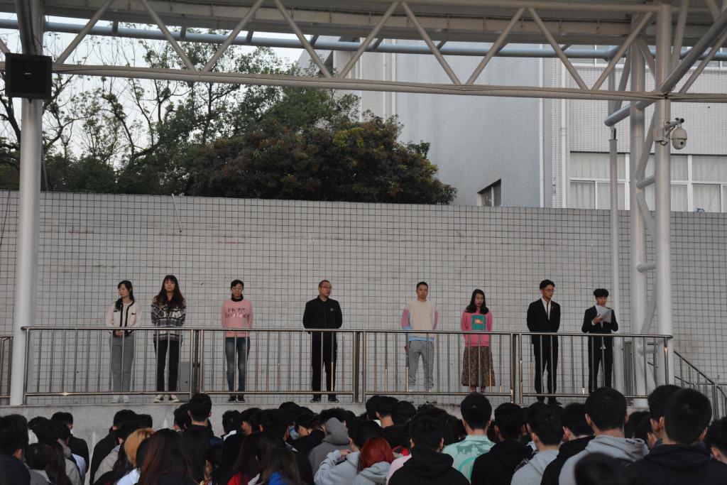 最后,各年级辅导员分年级讲评,升旗圆满结束。
