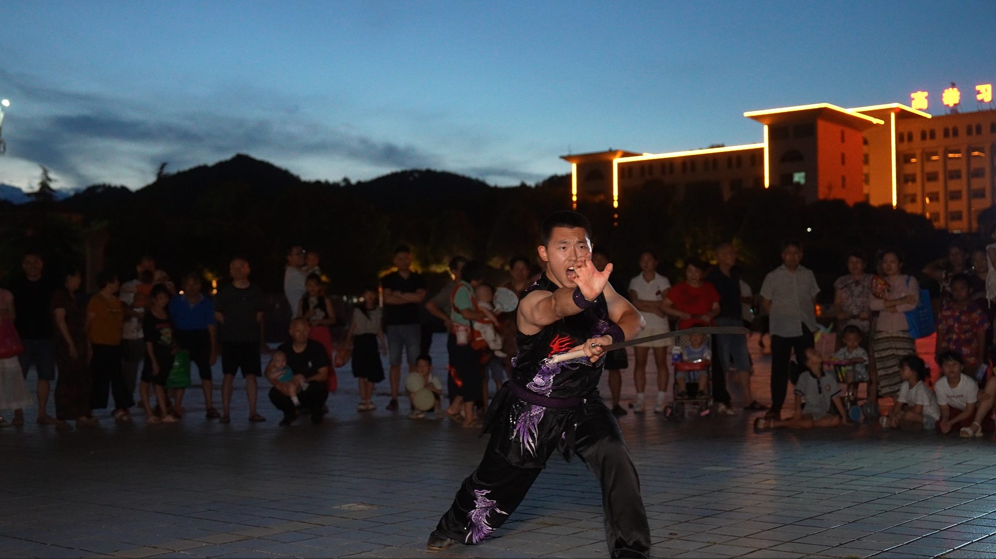 图为实践团武术教学成员在玉合广场表演