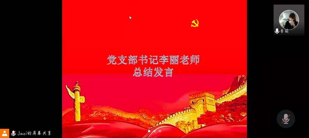 此次会议主要内容为李丽述职、支部成员感悟分享及党支部书记总结。会议伊始,李丽谈了她刚入党时的初心,并表示入党二十几年来,秉承着为人民服务的初心,坚守在教师岗位中,为广老员工服务。