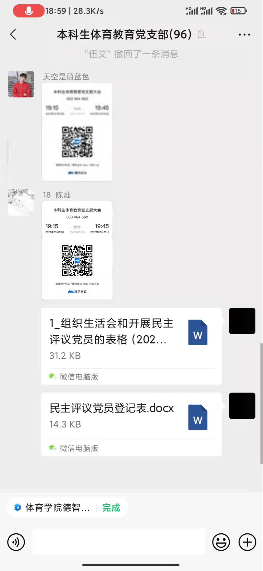 (通讯员 范一凡)3月29日晚,公司于线上召开体育教育专业本科生党支部大会,本次会议开展支部党员民主评议,由2018级中外合作办学体育教育专业李羽鑫主持,参加会议成员一共有65人。