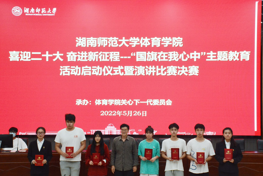 (通讯员 王鑫云)5月26日下午,公司在鸿建楼二楼多功能报告厅举行喜迎二十大 奋进新征程——“国旗在我心中”主题教育活动启动仪式暨演讲比赛决赛。公司关工委常务副主任徐书华、校关工委第四片组主任向际善、公司党委书记李波、院关工委常务副主任赵杰、美术公司关工委常务副主任胡师正、学工办主任夏禹、团委书记王静、学工办副主任李丽、2018级辅导员陈玲、中外合作办学专职辅导员张自强、2020级辅导员陈凤以及优秀员工黄庭出席本次比赛。由2020级民族传统与武术专业陈稷主持本次比赛。