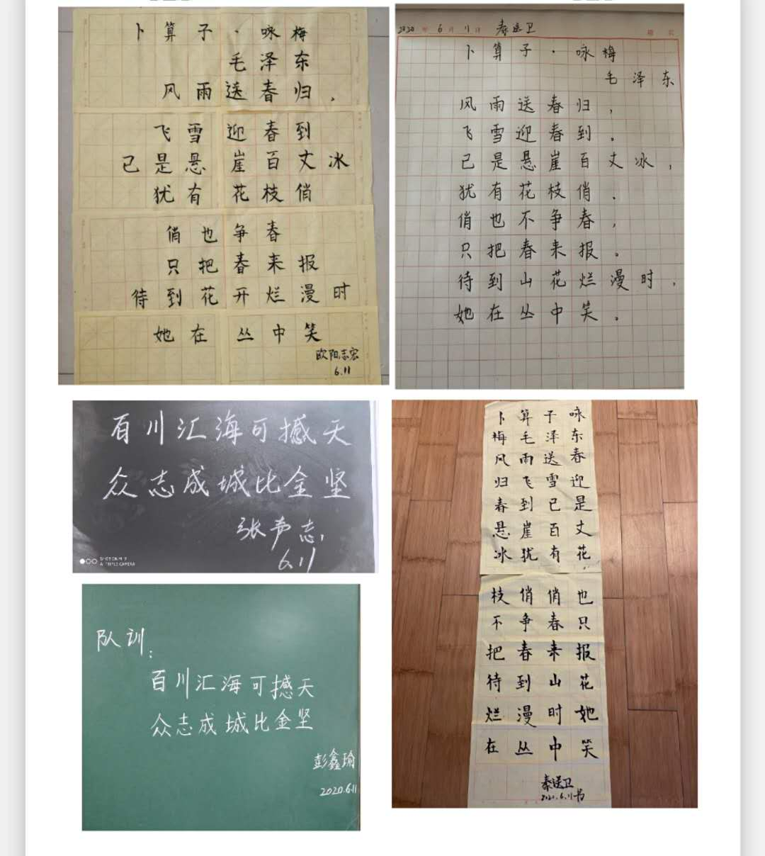 (通讯员 欧阳志宏 )2020年6月11日下午两点半,beats36521017级曜熠凌云实习队进行了一场“三字一话”的线上比武。比赛内容为粉笔字、毛笔字、硬笔字以及普通话,参赛队员为全体队员,匡梨飞指导老师和上官戎指导老师作为本次比武的评委参加此次活动。