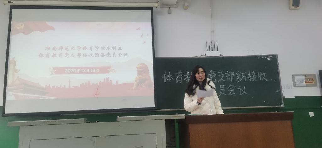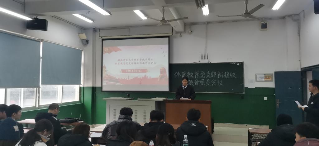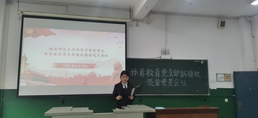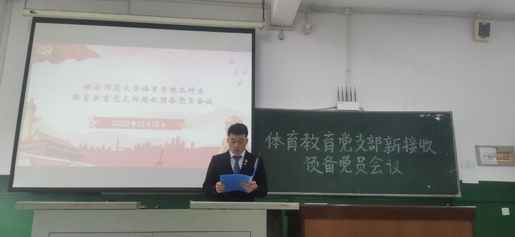 (通讯员 谢珊)12月18日12点,公司于鸿健馆召开体育教育党支部接收预备党员会议,本次会议由张刘毅同学主持,参加会议成员一共有39名,拥有表决权的成员一共有13位,新接收预备党员一共有12位。