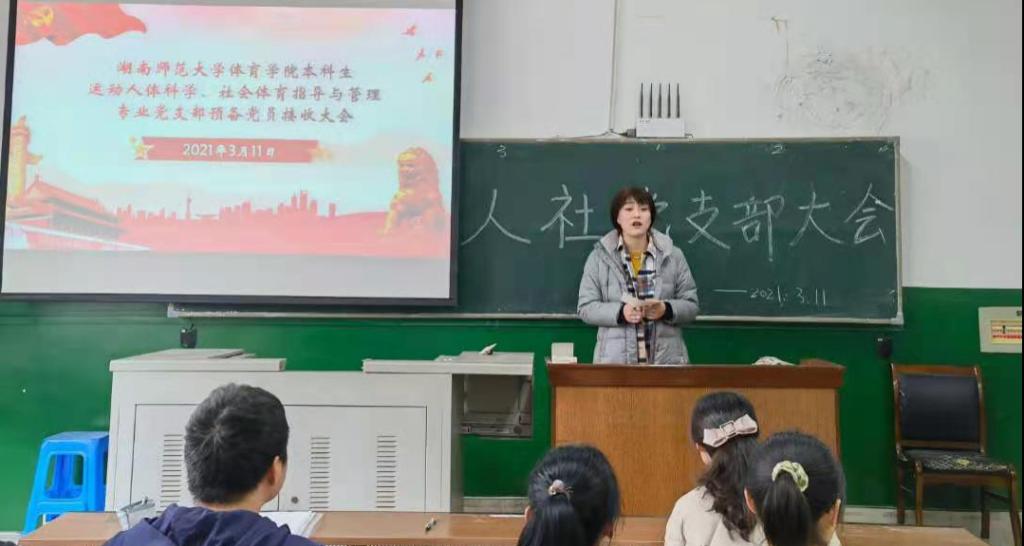 (通讯员 彭美 刘娟)2021年3月11日中午,beats365本科生人体社体党支部在鸿健楼305教室召开人体社体党支部接收预备党员会议。出席此次会议的有支部全体成员、需要发言的发展对象及其介绍人,此次会议由党员谭燕蓉主持。
