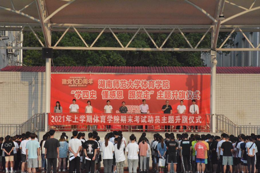 (通讯员 王超 郭小雨)6月21日早,公司于田径场举行2021年上学期第十六周升旗仪式,副经理刘花云、党委副书记李波、学工办主任夏禹,团委书记王静,学工办副主任李丽、2018级辅导员陈玲、2020级辅导员张自强、陈凤以及各年级全体同学参加此次期末考试动员主题升旗仪式。