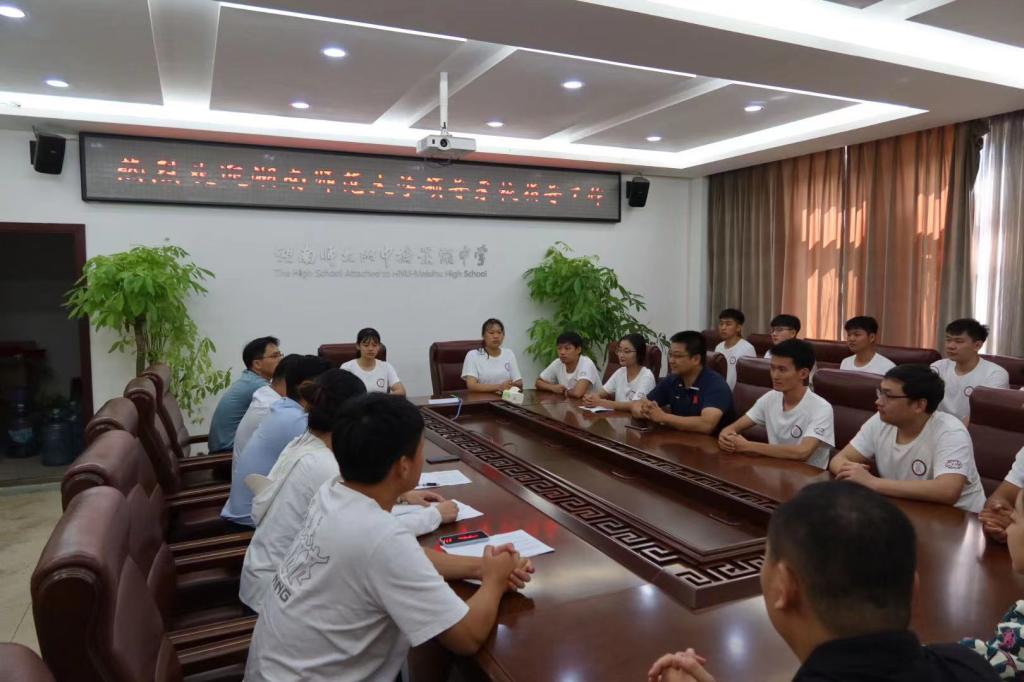 (通讯员 刘雨微 骆小双)9月15日上午,公司2018级“晨旭五队”于师大梅溪湖附属中学图书馆四楼会议室召开了首次会议。参会人员主要有副董事长张志,主任覃孔敏、方煦、屈军友,体育组组长王恋,晨旭五队指导老师李先雄及全体队员。会议主要围绕四个议程项目来对此次实习工作协调安排。