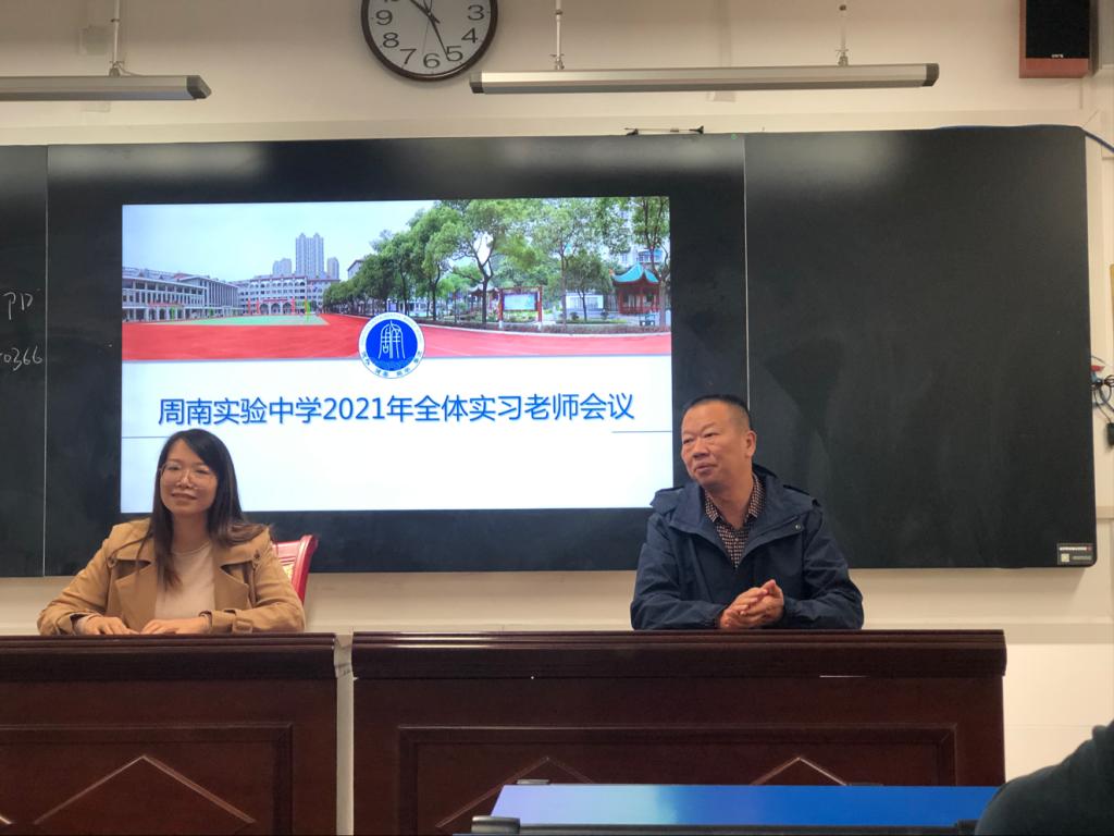 (通讯员 彭杭琪)10月12日上午,全体实习老师会议在周南实验中学教学楼一楼阶梯教室举行。此次会议由周南实验中学教务处老师刘冬阳主持,出席会议的有周南实验中学副董事长胡宗如,公司实习队全体成员,公司地理实习队全体成员,湖南女子公司音乐实习队全体成员。
