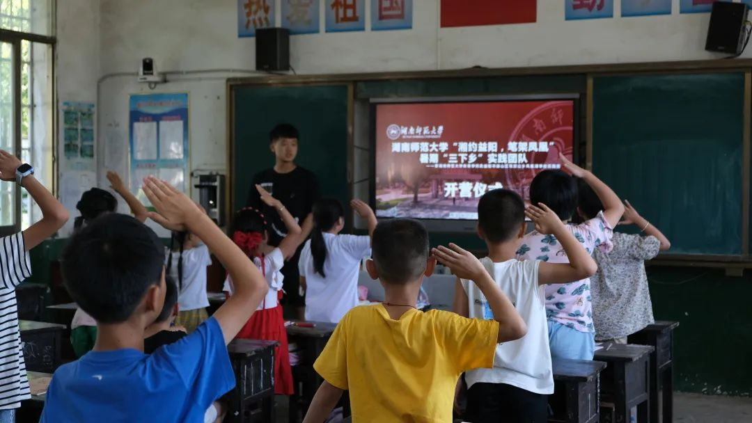 首先,举行了开营仪式,一共分为五项内容:一、奏唱国歌,全体师生起立,少先队员行队礼。二、队长李政伸讲话,他着重强调活动安全问题,并对活动展开期望。三、主讲老师上台进行自我介绍,同学们表示热烈的欢迎。四、进行击鼓传花游戏,同学们都积极参加,游戏顺利进行的同时也活跃了现场气氛。五、龚老师宣布活动正式开始,校方与三下乡实践团队合影,开营仪式圆满结束。