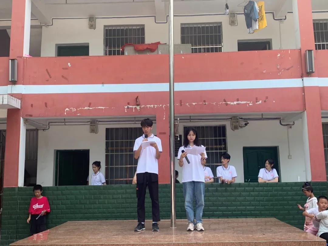 表演开始由主持人徐柯威、李瑾宣布公司汇报演出暨捐赠仪式。接下来是同学们向在场的老师同学们演出。随后领队夏禹老师代表实践团向渣坪九年一贯制公司捐赠体育用品。最后他表示通过此次活动不仅锻炼了队员们的个人能力,同时也让孩子们在特色课程中学到了知识,相信在未来的路上孩子们也会一直记得这个炙热但美好的暑假,并且努力学习为社会做一份贡献。
