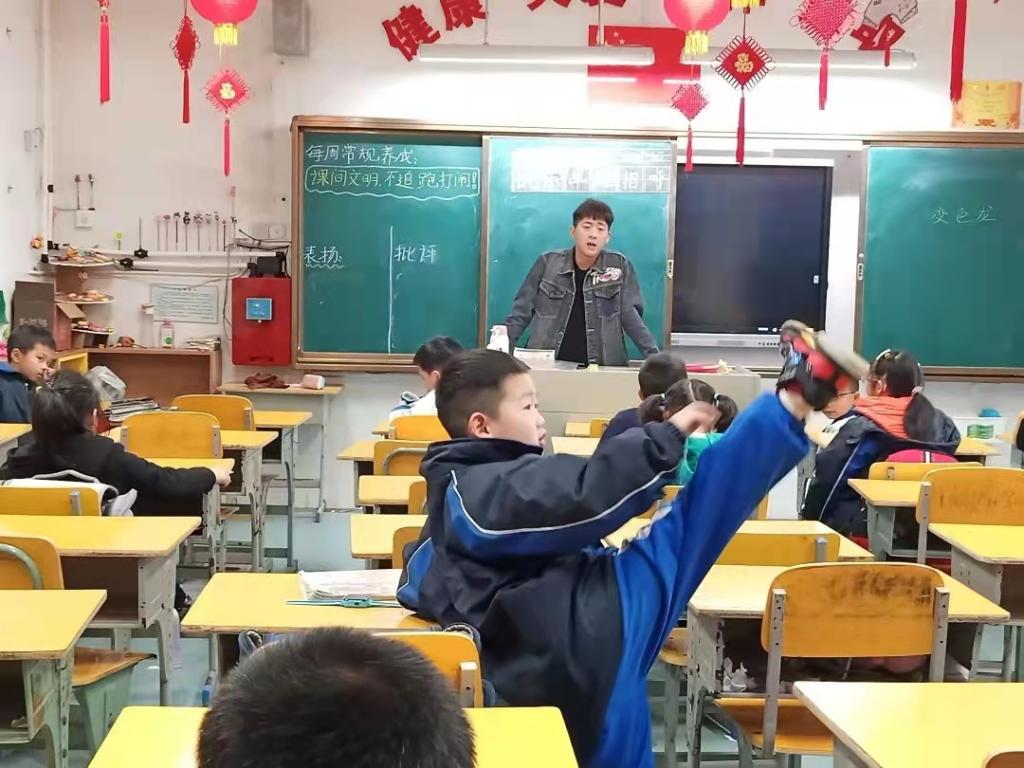 4月8日公司在岳南路小学展开第四期区校共建活动,志愿者老师们首先带领着小朋友们对上周学习过的内容进行回顾和提问以加深记忆,同学们都积极举手回答。其次,老师在讲台上对武术动作进行讲解和示范,并观察孩子们的动作并耐心的给予纠正。然后,老师们带领员工们观看了电影《给爸爸的信》,同学们看得津津有味,有说有笑。在课后,工作人员对小朋友们进行了采访,孩子们都公司展开第四期区校共建“精武少年”志愿者活动