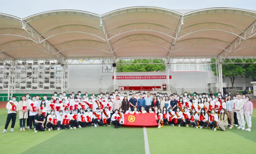 全体起立奏唱团歌,全体获奖人员与领导合影留恋,升旗仪式圆满结束。