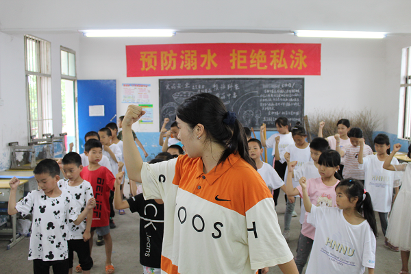 实践团成员伍艾是本堂课的授课老师,她同时也是一名HipHop舞种爱好者。在决定开设街舞课后,伍艾在前期做了大量的教学准备。她表示:“当地孩子们大多都是留守儿童,之前没有接触街舞的机会,对于街舞是处于完全零基础的状态,刚开始学习时会比较困难,并且教学对象是一至四年级的孩子,对于动作难度的接受能力也是要考虑的因素之一。”要想让孩子们能轻易接受,又要符合他们这个年龄段的舞蹈,伍艾决定选取一首节奏感强、富有动感的音乐来编舞。与此同时,在此基础上加入了英语说唱的教学内容,旨在引导成员接触新鲜事物,用创新的形式感受学习语言文化的趣味性。通过本次课程,成员们从开始的内敛害羞,逐步变得自信大方。在课堂自主练习环节,学员主动向实践团成员伍艾提出问题,伍艾细心解答并耐心示范,师生共同营造了一个良好的学习氛围。