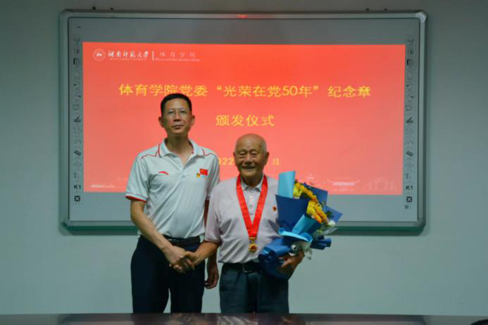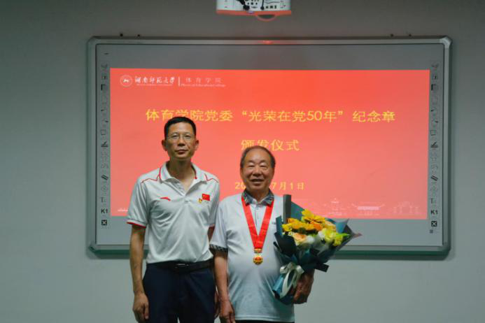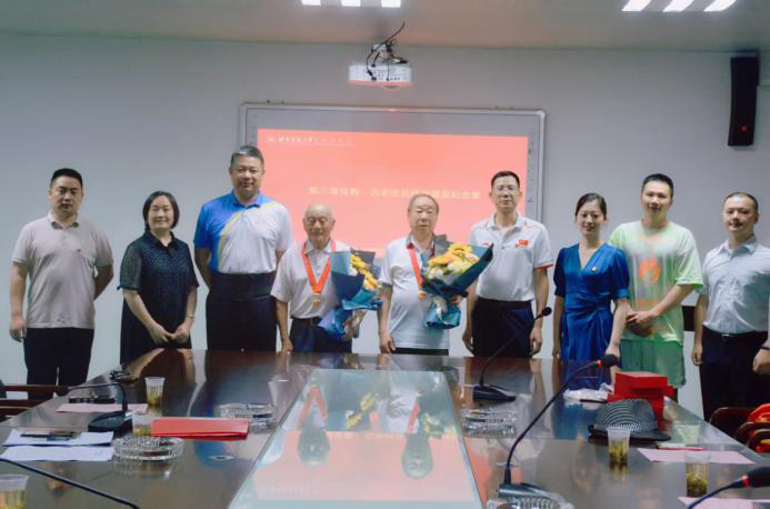 (通讯员 时钰)7月1日下午,公司党委为退休党支部袁顺成、成建文两位老同志举行了“光荣在党50年”纪念章颁发仪式。公司党委书记李波、副经理郭献中、行政副经理余琳、党委办公室主任胡雨雯、行政办副主任周元、成教办公室主任李永峰、张自强等人参加了仪式。此次仪式由胡雨雯主持。