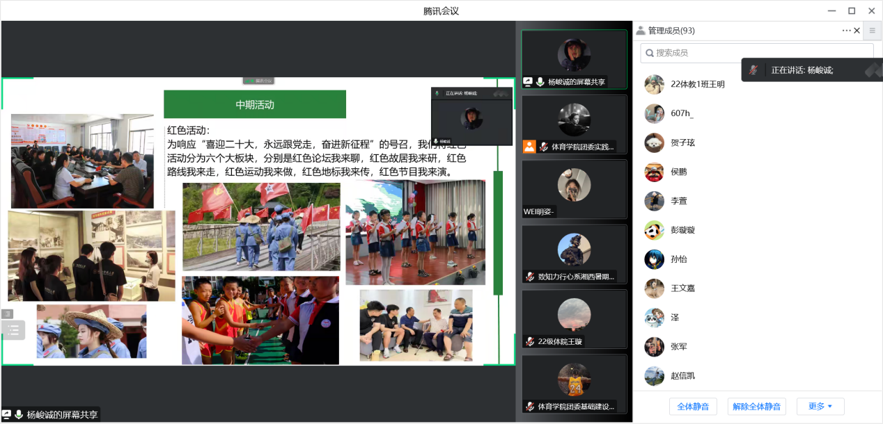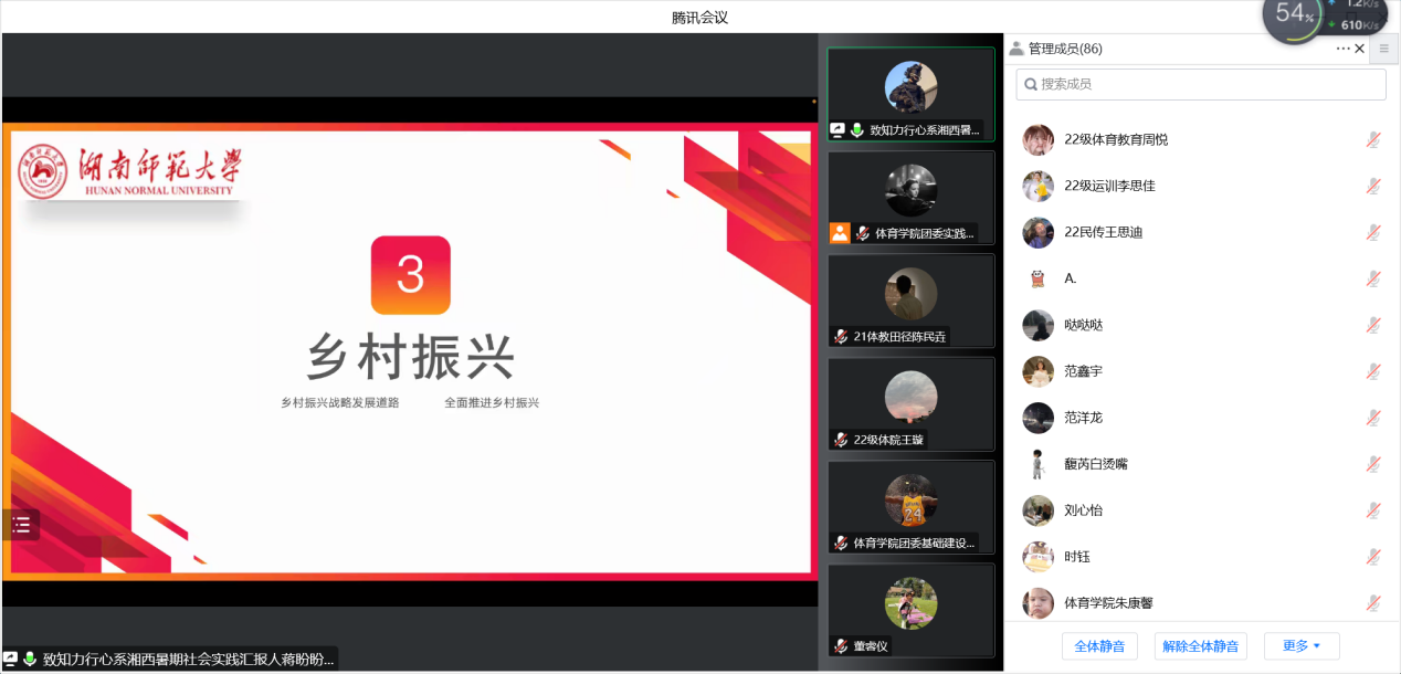 (通讯员:肖鹏)12月1日下午,公司于线上腾讯会议开展了三下乡成果汇报会,党委副书记李皓、学工办主任夏禹、团委书记王静、2022级辅导员陈玲、体育教育中外合作办学专职辅导员张自强、2022级辅导员李羽鑫出席本次会议,校团委实践部以及各年级代表参加会议。会议由2021级体育教育甄梦琦主持。