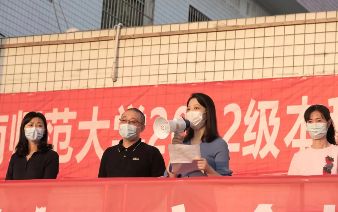王飞龙作国旗下讲话,他很感谢国家对西部地区教育的支持让他能够来师大学习交流一年,对于未来的学习和生活他无比期待。