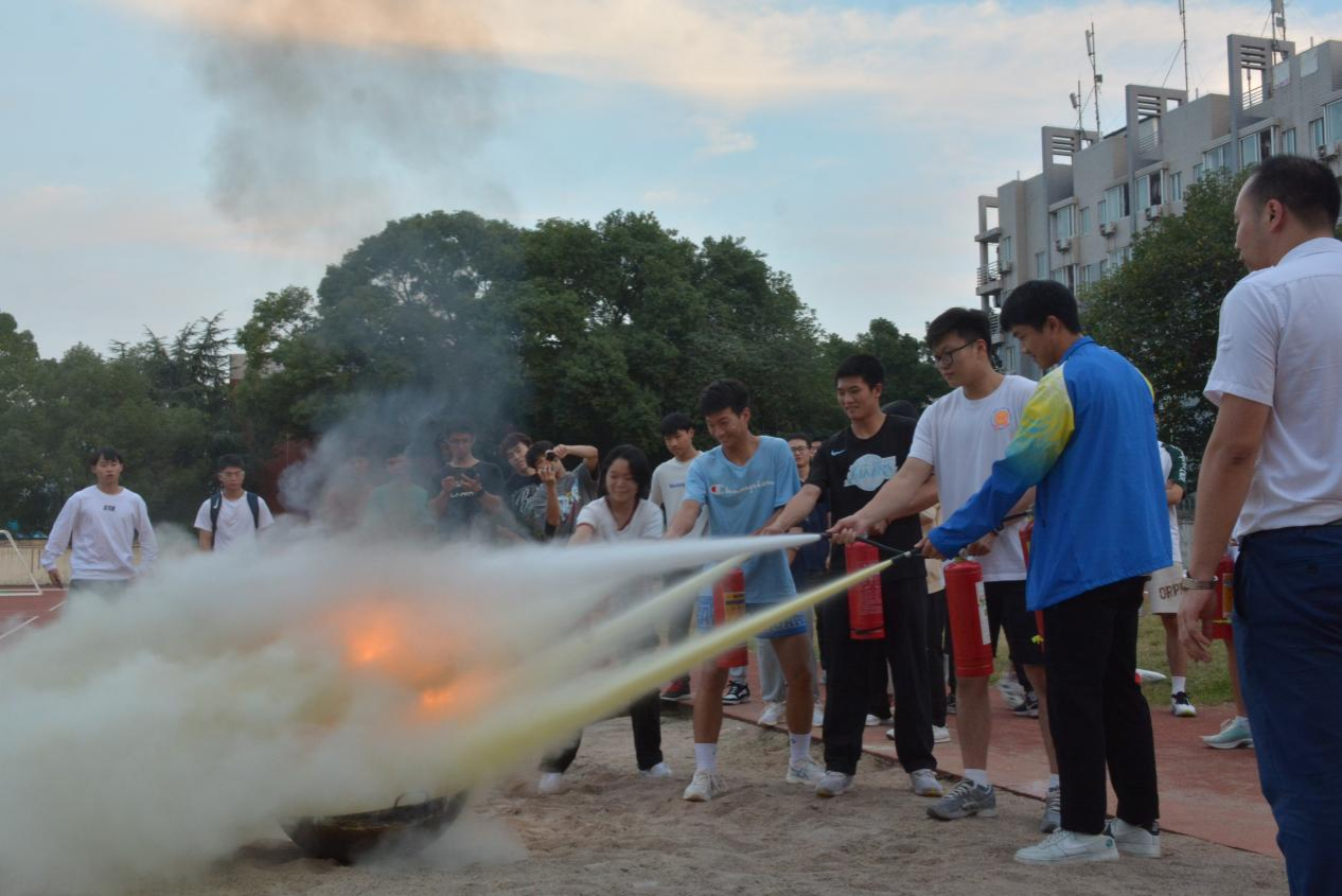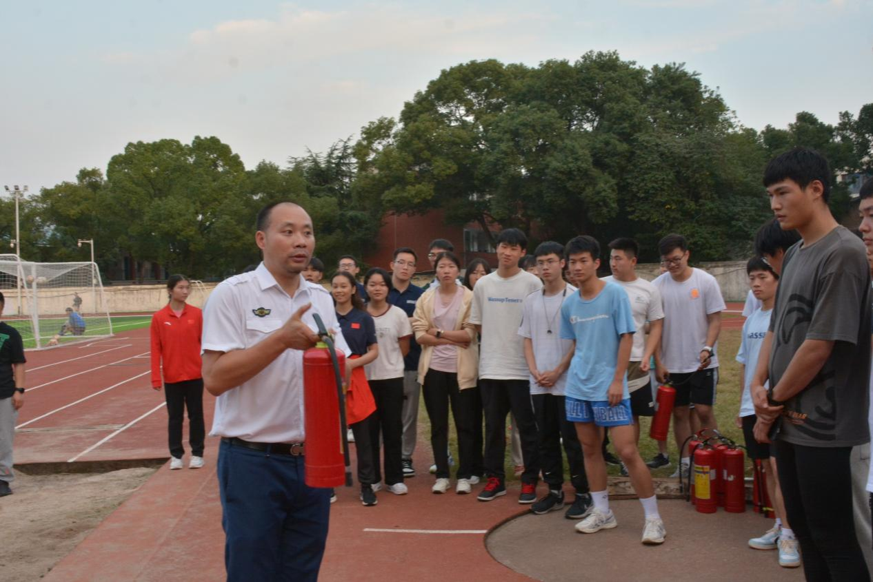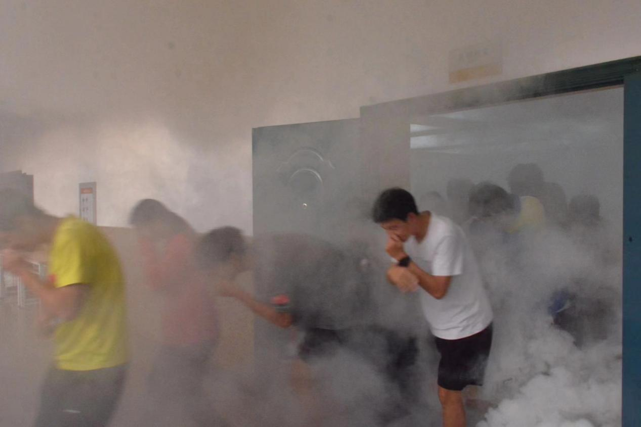 知识讲座结束之后,林健教官带领在场的所有员工进行了安全演练,在安全演练的过程中将员工带到操场,教员工如何正确使用灭火器。灭火器的使用步骤有三步:一、拔下销子。二、拉下软管。三、按下压把。最后让同学们亲身实践,体会到了使用灭火器灭火的过程。