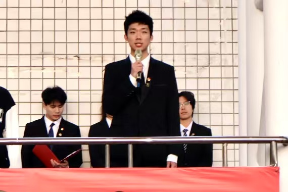 来自2024级体育教育中外合作办学专业的顾汉唐进行国旗下演讲,他演讲的主题是《拥抱人工智能,做时代智慧青年》。他指出:在科技飞速发展的当下,我们老员工要以批判的眼光看待人工智能,要以正确的态度和方式运用人工智能。他希望当代青年拥抱科技,善用科技,用智慧和努力书写属于我们的精彩篇章。