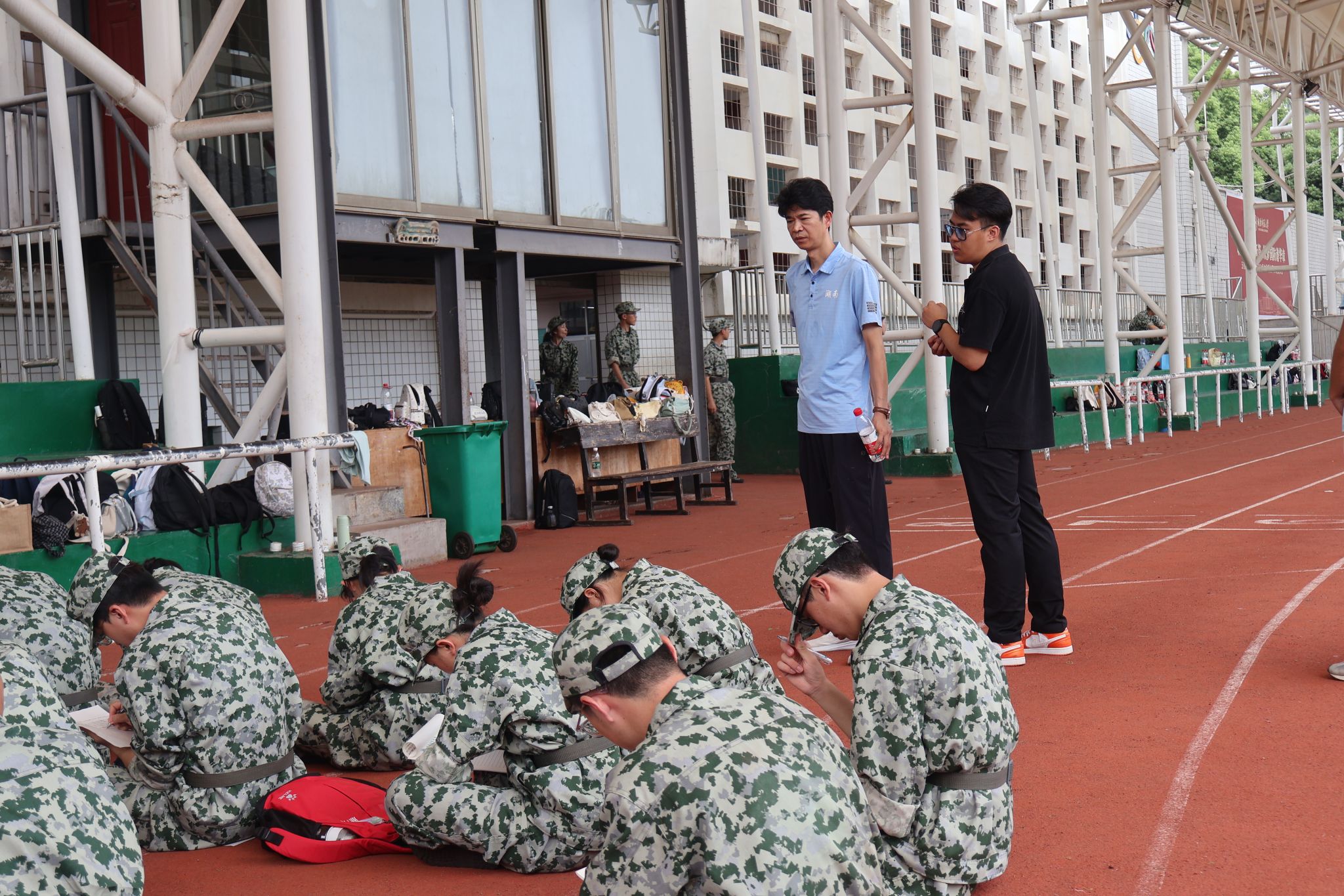 在南院田径场,李皓对教官们严谨的教学态度和员工们刻苦训练的精神给予了高度评价。同时,还询问了师生们在军训期间的生活和身体状况,并鼓励大家继续保持良好的训练状态,圆满出色地完成此次军训任务。