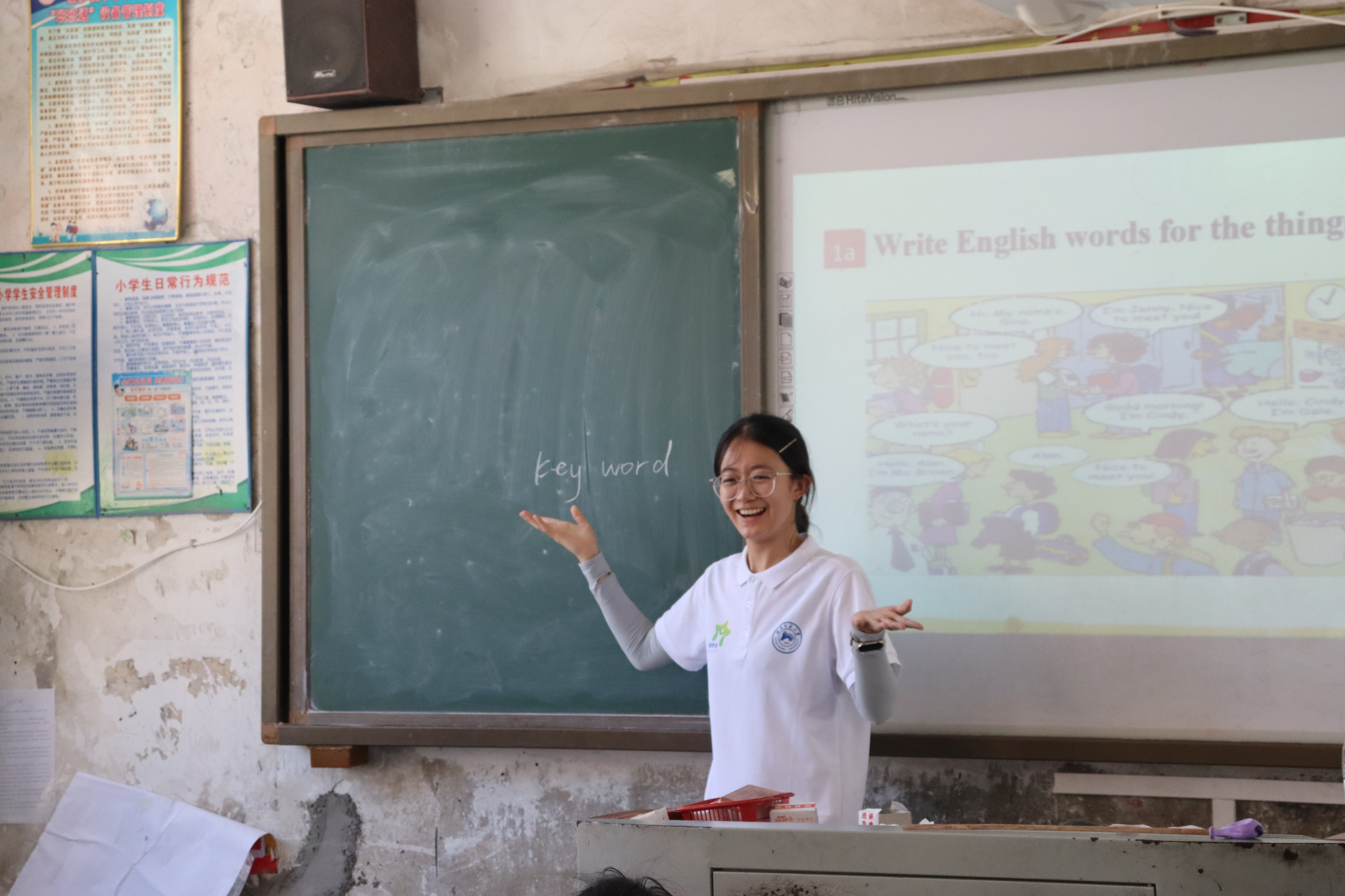 图为高沙镇中心小学员工回答英语课问题通讯员曲思佳供图