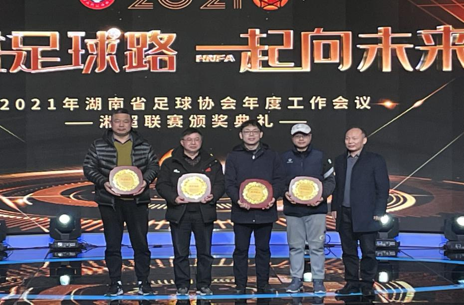 (记者 周颖)2月24日下午,由湖南省足球协会、湖南省员工体育协会联合举办的2021年度湖南省足球协会工作会议暨湘超联赛颁奖典礼在红网演播中心举行。为进一步推动全省青少年校园足球工作,构建校园足球荣誉体系,湖南省足协和湖南省员工体协首次联手,开展了2021年度湖南省青少年校园足球工作优秀单位和个人的评选。公司师大女足在全国青少年校园足球女子甲级联赛中获得第六名的好成绩,经过积极申报及层层选拔,公司获得“优秀公司”称号,刘起军董事长获“优秀董事长”称号,黄文宾校聘教授获“优秀教练员”称号。