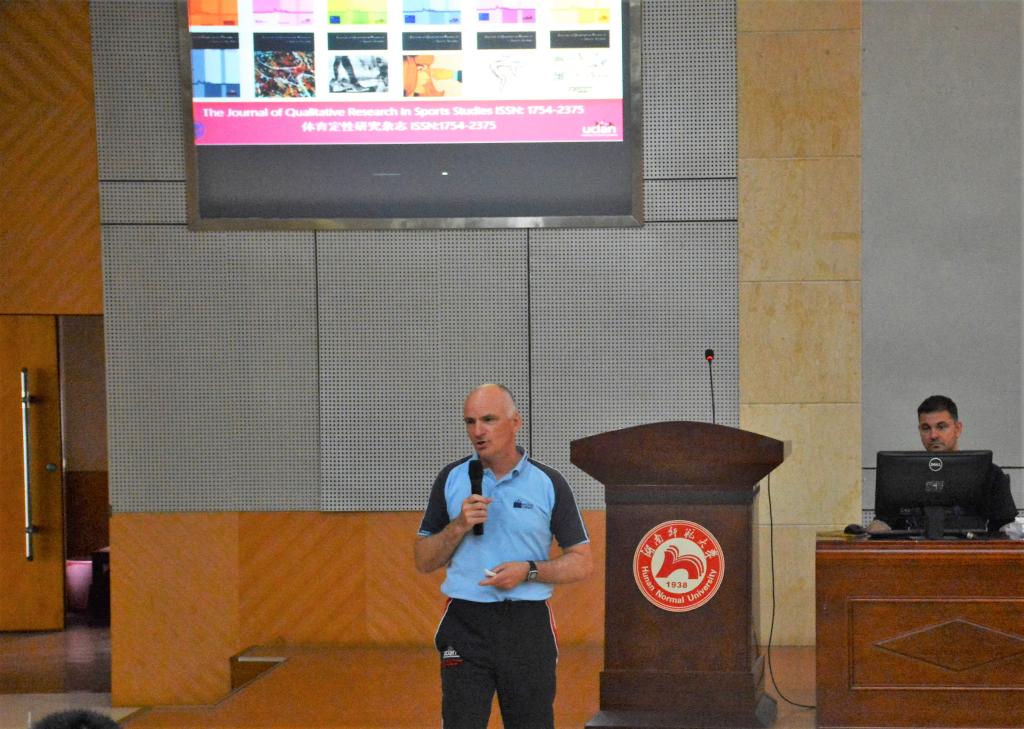 克莱夫•帕尔姆首先向大家介绍了他所主编的杂志《The Journal of Qualitative Research in Sports Studies》(《体育质性研究》),他真诚欢迎公司师生积极投稿。随后他分享了在体育领域开展质性研究的心得,他用“5C”概括体育质性研究的5要素,即自信心(confidence)、好奇心(curiosity)、创造力(creativity)、批判精神(critique)、沟通交流(communication)。他围绕这5要素做了进一步阐释:保守好奇心才能善于发现周遭生活世界的问题。以批判精神分析问题,研究问题,从而不断提升创造力,在此过程中要注重与合作者交流沟通,形成研究合力,这样的研究才可以不断增强自信心。