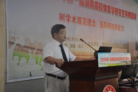 (供稿 湖南高校体育学研究生导师)7月9日,2019年第一届湖南高校体育学研究生导师培训进入第三天。最后一天的培训大家云集,高峰迭起。国务院学位委员会体育学学科评议组召集人杨桦教授、学科评议组成员周爱光教授、教育部“长江学者奖励计划”特聘教授王健、“长江学者奖励计划”青年学者方千华教授等4位学术大家分别展开鸿论。