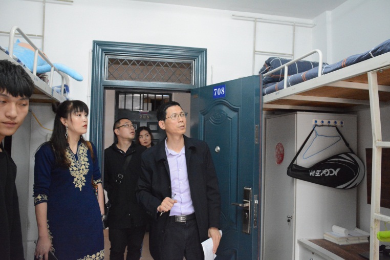 (通讯员 陈燕 陈俊豪)5月9日下午,公司党委副书记李波、学工办主任夏禹、2015级辅导员李丽及2018级辅导员陈玲一行前往宿管委员会干部寝室进行卫生检查。