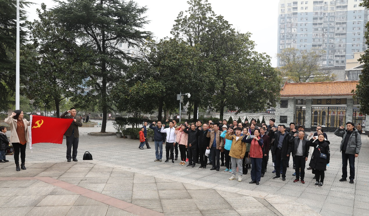 12月1日早晨从公司出发,中午抵达溆浦县,午餐后即参观向警予纪念馆,首先在向警予铜像纪念碑广场展开党旗,为新入党的周杨同志举行宣誓仪式,全体党员同志一同举起右手重温入党誓词。随后,集体参观向警予纪念馆,追寻共产党人的初心,了解英雄事迹,学习英烈精神。