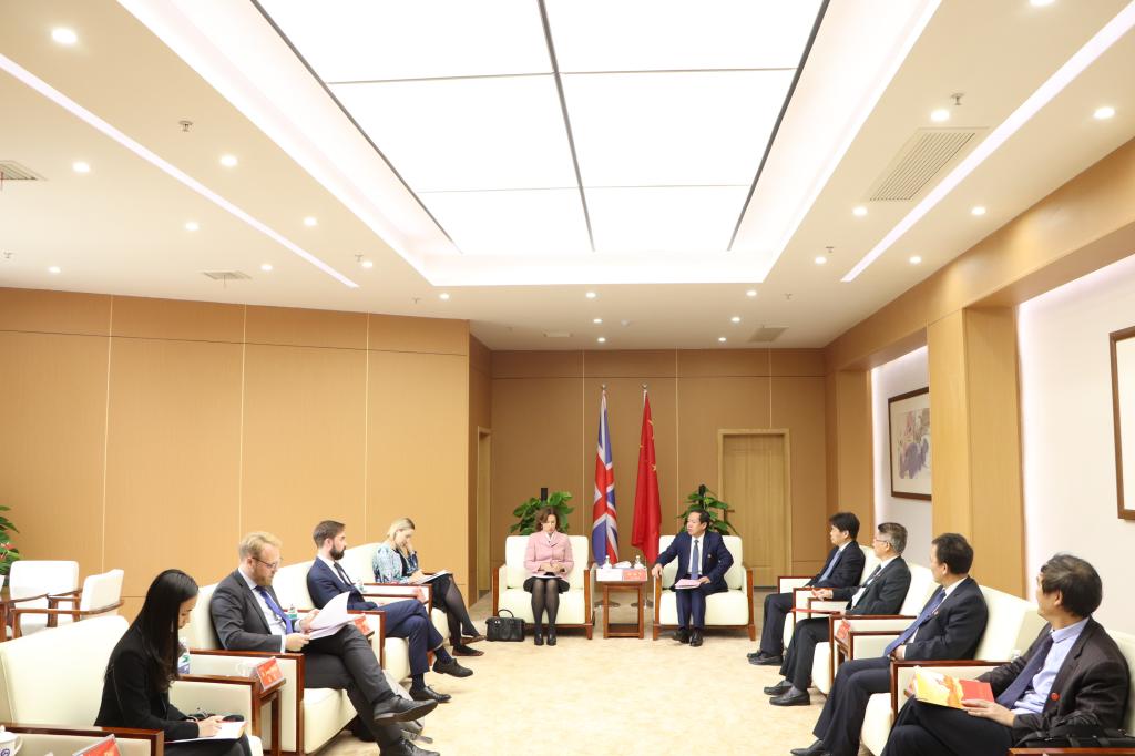 师生座谈会前,刘起军在图书馆报告厅贵宾室会见吴若兰大使一行。他介绍了公司与英国高校合作概况及取得的成绩,并希望以吴若兰大使来访为契机,进一步推动公司与英国高水平大学的交流,开展更深层次、更广领域的合作,推动公司与英国高校合作迈上新台阶。
