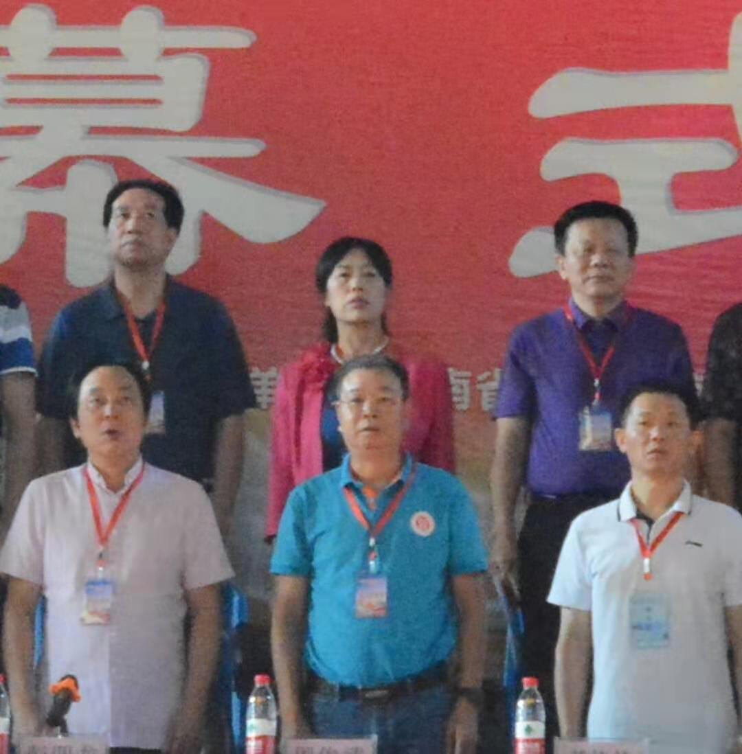 汤长发依次介绍出席开幕式的领导和嘉宾,随后全体起立奏唱国歌。