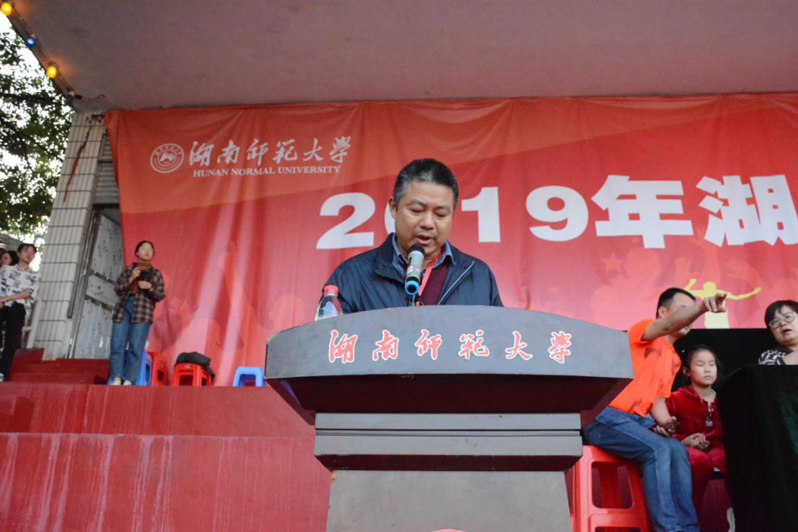 郭献中宣布2019年beats365官方网站田径运动会胜利闭幕!并期望各位同学越战越勇,走出寝室,走下操场,争做德、智、体、美、劳全面发展的社会主义建设者和接班人。