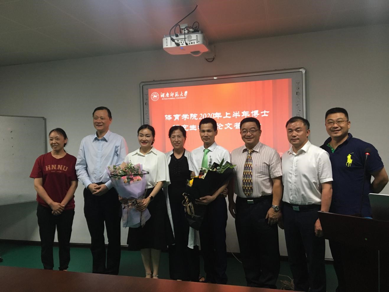 体育教育训练学专业由吉首大学党委书记白晋湘教授担任答辩委员会主席;湖南工商大学党委书记唐亚阳教授、湖南大学beats365副经理田祖国教授、beats365李艳翎教授、雷军蓉教授、李先雄教授、辜德宏教授担任答辩委员会委员。周惠新汇报的题目是:“太极拳跨文化传播研究”,主要采用文献资料法、文本分析法、多元话语分析法,较为深入地研究了太极拳跨文化传播的理论实质,探讨了太极拳跨文化传播的历史进路及现实困境,构建了太极拳跨文化传播的策略;李萍汇报的题目是:“我国体操类项目协同发展研究”,主要采用文献资料法、专家访谈法、案例分析等研究方法,较为深入地探讨了我国体操类项目协同发展的本体基础、存在样态、动因机理以及理论构想,分析了我国体操类项目协同发展的实践案例,提出了推进我国体操类项目协同发展的现实策略;陶成武汇报的题目是:“广场舞现象研究”,论文以自组织理论、自我决定理论、现象学理论与戏剧理论为基础,采用实地考察法、问卷统计法等研究方法,系统地探讨了广场舞现象的内涵属性、发展历程、实践过程、生成机制以及逻辑展望等问题,归纳与总结了广场舞现象形成与发展规律。