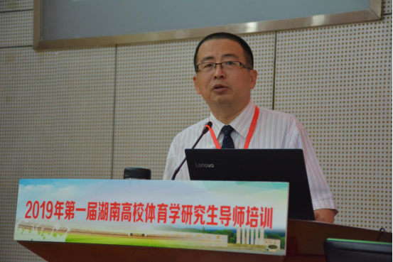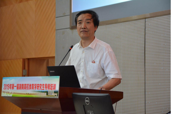 (供稿 湖南高校体育学研究生导师)7月8日,2019年第一届湖南高校体育学研究生导师培训进入第二天。培训内容精彩纷呈。窗外夏雨滂沱,场内氛围热烈。主讲人娓娓道来,听众们凝神伫听。
