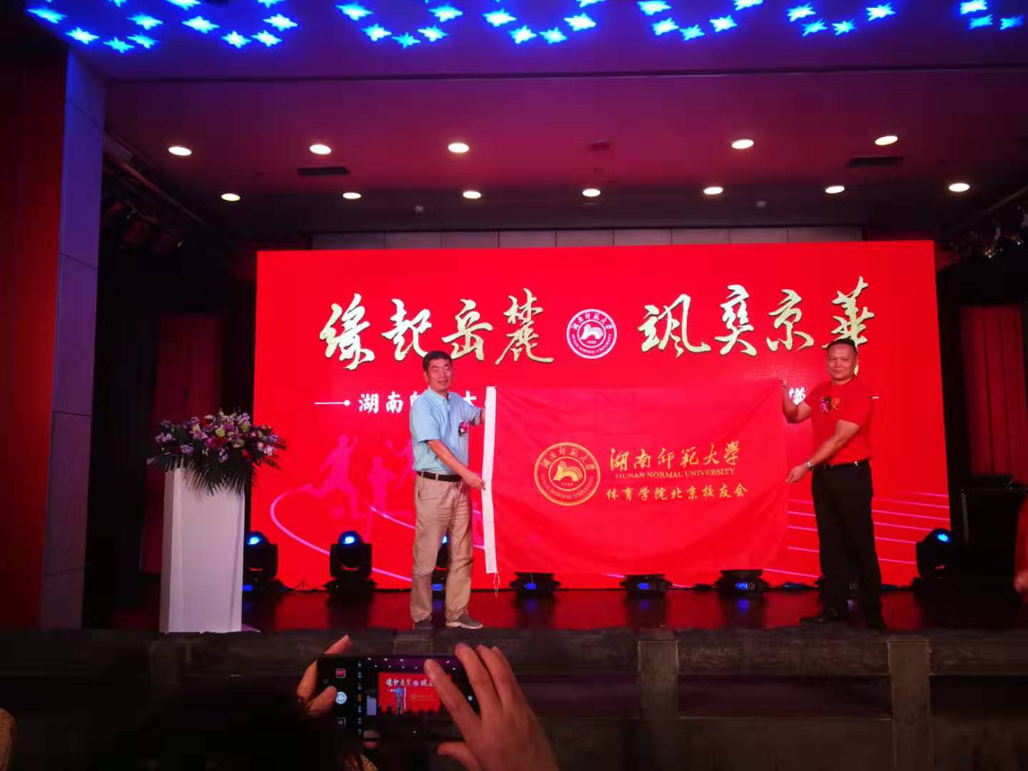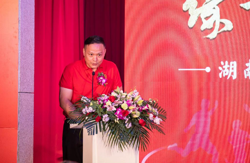 黎大志向员工会授会旗,彭正乔、汤长发、李明辉、李波分别为理事会成员颁发聘书。