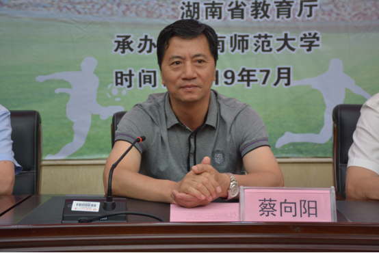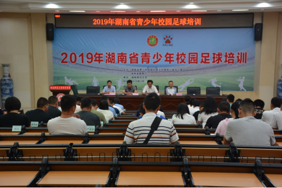 (供稿 湖南省青少年足球培训班)2019年7月8日上午2019年湖南省青少年足球培训开班仪式在公司鸿健楼一楼阶梯教室隆重召开,福建师范大学教授蔡向阳,公司经理汤长发、党委书记李明辉出席。仪式由公司副经理黄文斌主持。