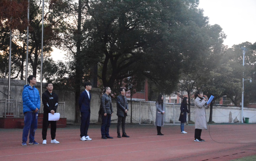 学风督导队队长王昕杰宣布第十一周升旗仪式缺到名单。