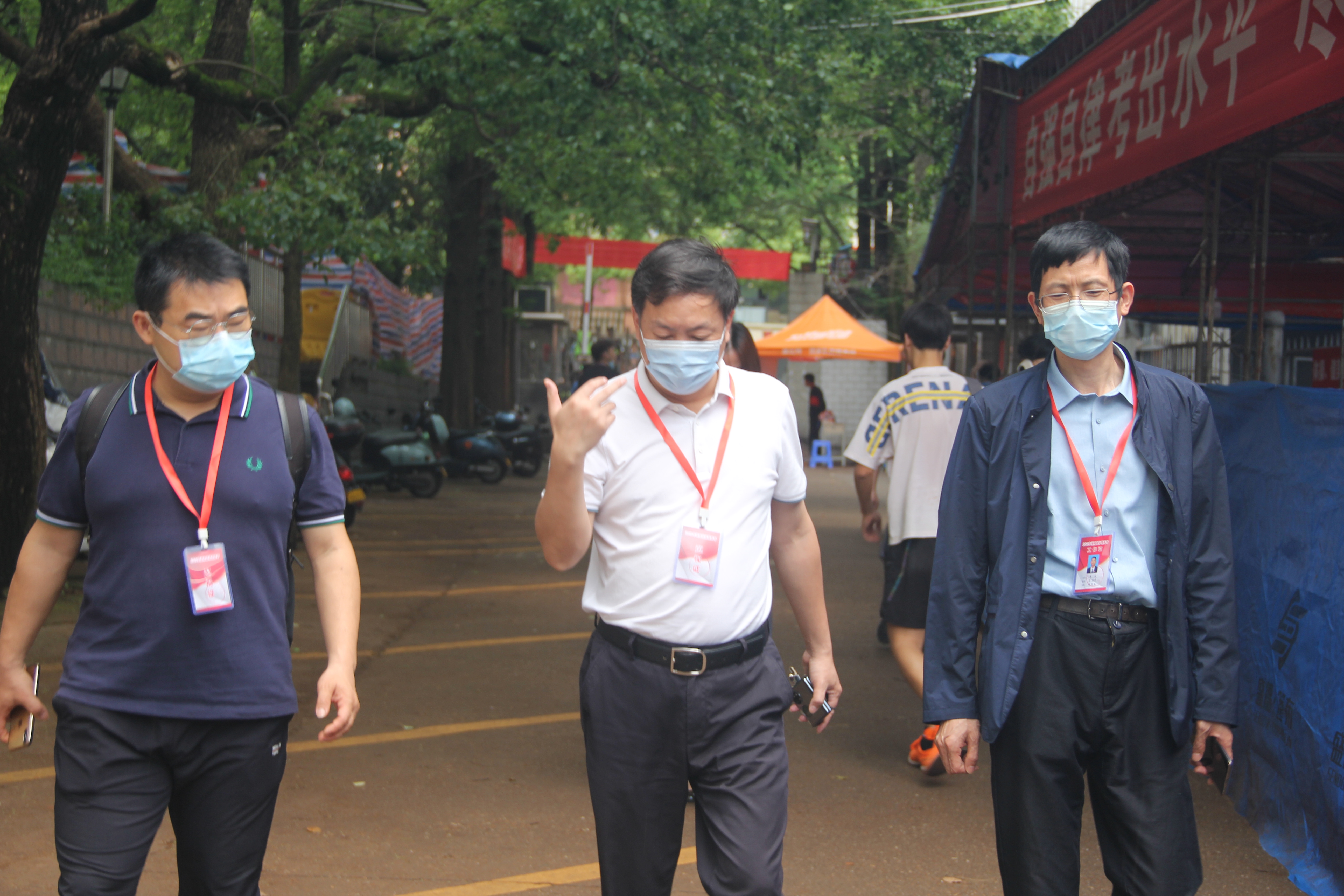 王辉一行逐一视察田径场、检录点、排球场、体育馆等场地,详细了解组考安排、设备运行、考务纪律、考生考试等情况,认真听取了考务工作人员关于今年体育高考开考情况汇报,仔细询问了考试组织工作、安全保卫措施及疫情防控等方面的情况,并指出要压实疫情防控责任,做细做实应急预案,确保考生安全;着重强调在极端天气下成绩电子显示屏、视频监控、风雨棚等考试设备与场馆安全的重要性;规范操作流程,严把考试质量关,为员工考出真实水平提供保障。