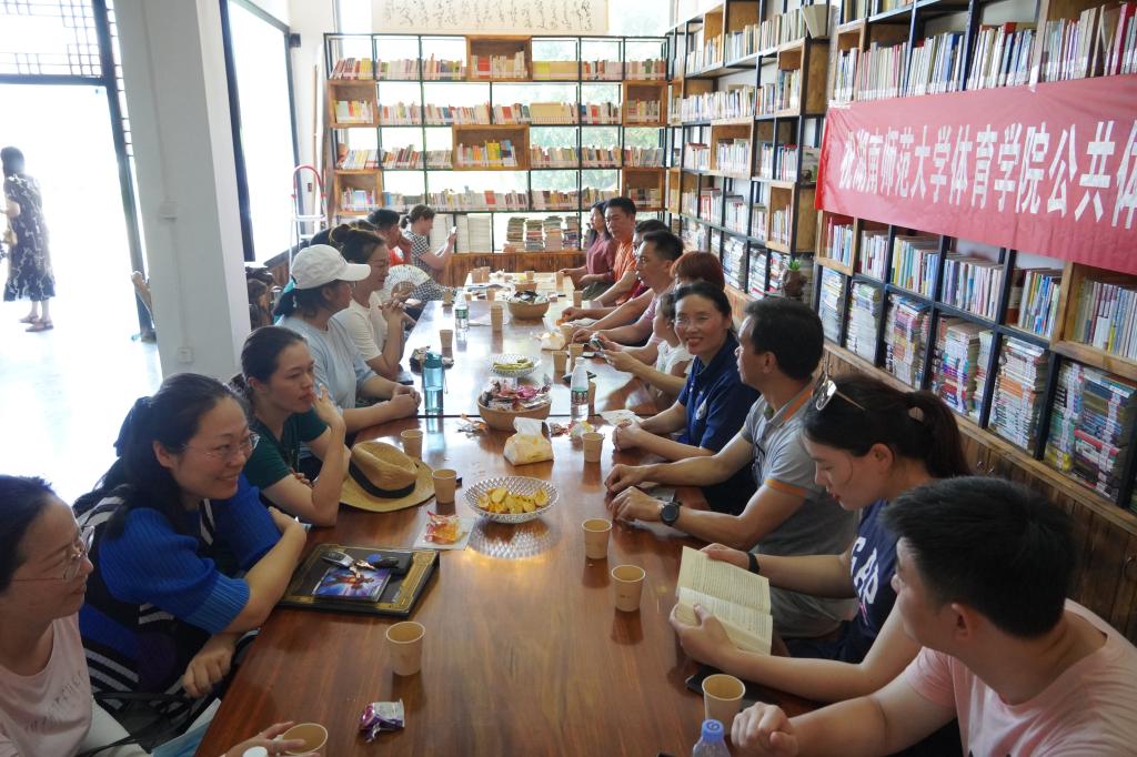 在参观完田汉生平纪念馆及田汉故居后,教研团队在田汉文化园书屋开展了主题为“在校园体育运动场地紧张的背景下,如何培养老员工的体育核心素养”的教学研讨活动,活动由刘斌教授主持;教研室各教师就聚焦如何利用有限的场地资源培养员工、改造开发新场地等核心问题进行了广泛的讨论与深刻的论述。