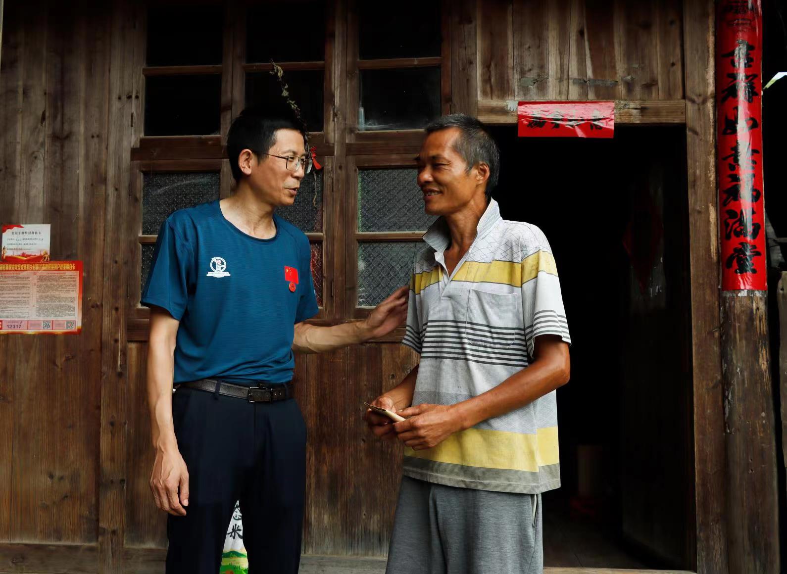 与结对帮扶对象陈远虎老人交谈