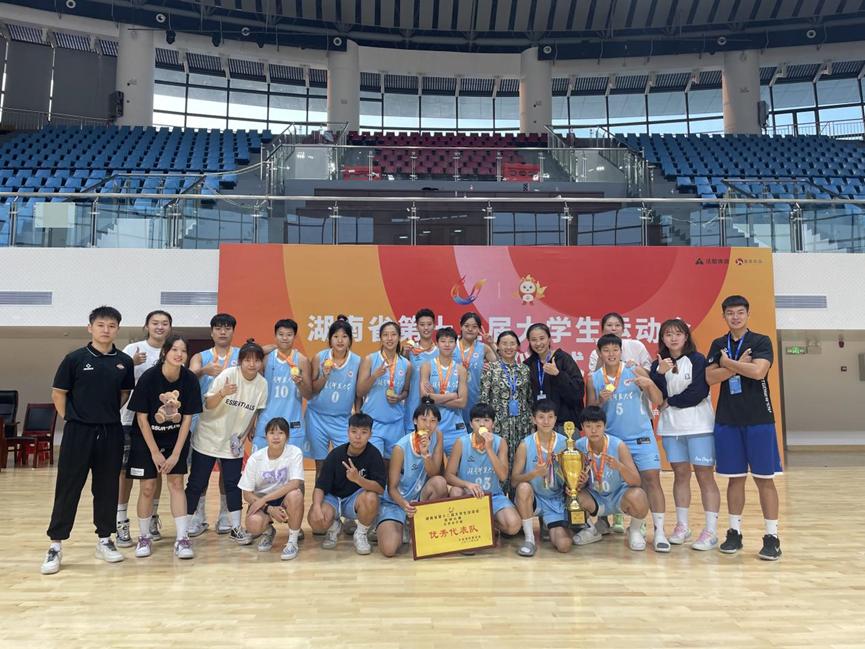 公司女排代表队在教练员申宝磊老师、韦云老师的带领下参赛。这次比赛,师大女排先后迎战了湖南工业大学、南华大学、中南大学、中南林业科技大学。在院领导和老师及教研室全方位的鼓励下,女排不负众望,经过五天的顽强拼搏,一路过关斩将取得了优异的成绩并获得了冠军荣誉。同时申宝磊老师获得“优秀教练员”,金熙琳、杜琼、刘洁三名队员获“优秀运动员”称号。
