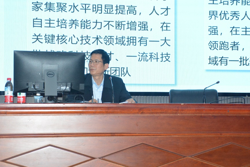 此次教学主题是“深入实施新时代人才强国战略”。李波从深入实施新时代人才强国战略的原因和做法两方面展开讲述,他提到在党的二十大报告中,习近平总书记强调:“教育、科技、人才是全面建设社会主义现代化国家的基础性、战略性支撑。必须坚持科技是第一生产力、人才是第一资源、创新是第一动力,深入实施科教兴国战略、人才强国战略、创新驱动发展战略,开辟发展新领域新赛道,不断塑造发展新动能新优势。” 在百年奋斗历程中,我们的党始终重视培养人才、团结人才、引领人才、成就人才,团结和支持各方面人才为党和人民事业建功立业。