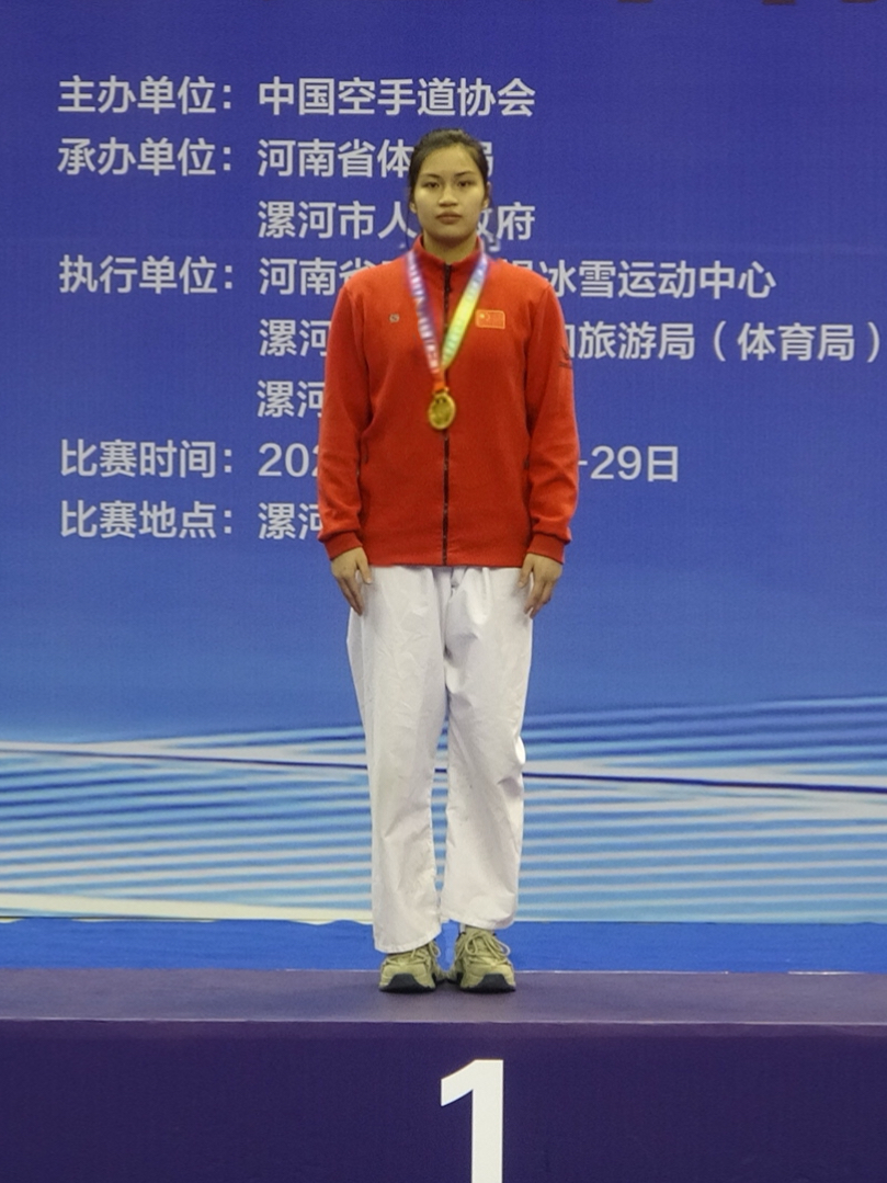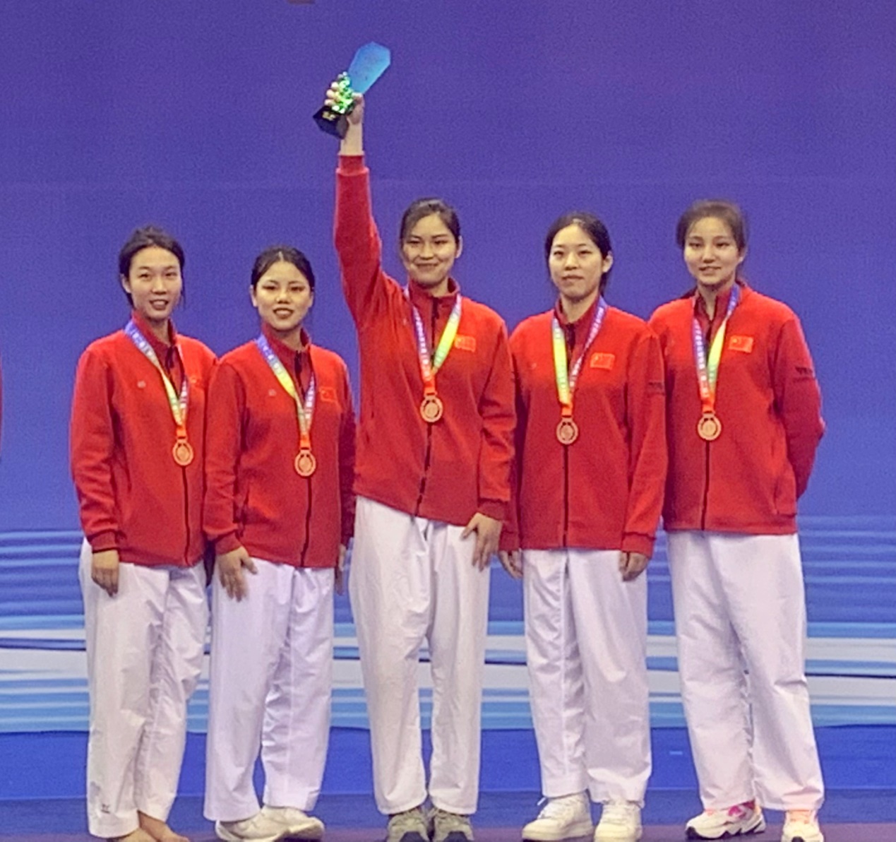 2021级运动训练专业龚淼琪对阵东道主河南队主力徐琪琪,经过激烈角逐,不负众望,以优异的表现夺得女子个人组手-68kg级冠军!2022级运动训练专业查雯红夺得女子个人组手+68kg级亚军!女子团体组手(龚淼琪、查雯红、陈巧依、林怀容、周跃如)夺得季军!2022级运动训练专业李想获男子个人组手+84kg级第五名。