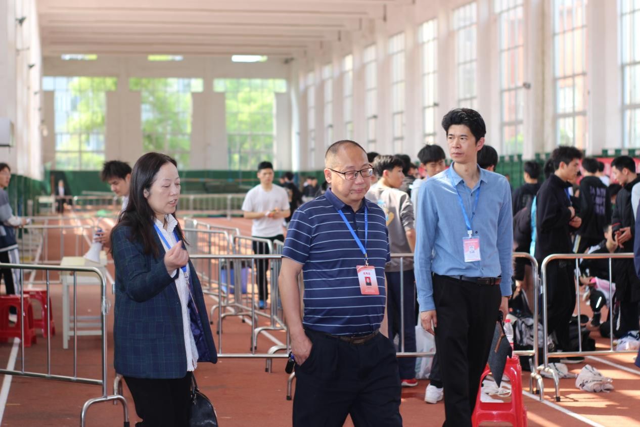 李瑛一行深入体育高考考试现场,逐一视察田径场、篮球场、排球场、游泳馆等考试场地,详细询问了第一批考生的具体情况及考场突发情况处置。李瑛强调,要提高思想认知,增强责任意识,防范化解各类风险,严抓落实考务管理,严明考试纪律,严格执行应急预案,进一步完善体考工作,以为考生服务为根本宗旨,全力做好体考期间的服务保障工作,把每一位考生放在心上,充分保障每一位考生权益,确保体育高考高质量进行。