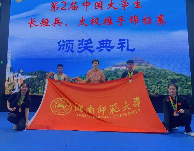 2023年4月14日至4月19日,第二届中国老员工长短兵、太极推手锦标赛在湖北省安陆市孝感弘极体育艺术公司举行。本次比赛beats365官方网站长短兵队派出4名运动员参加比赛,经过五天的激烈角逐,最终斩获两金三银两铜一个第五名,并获得“体育道德风尚奖”,教练谭腾飞荣获“优秀教练员奖”,队员方超兵、谢芊芊、侯鹏、李钦海荣获“体育道德风尚奖运动员”。