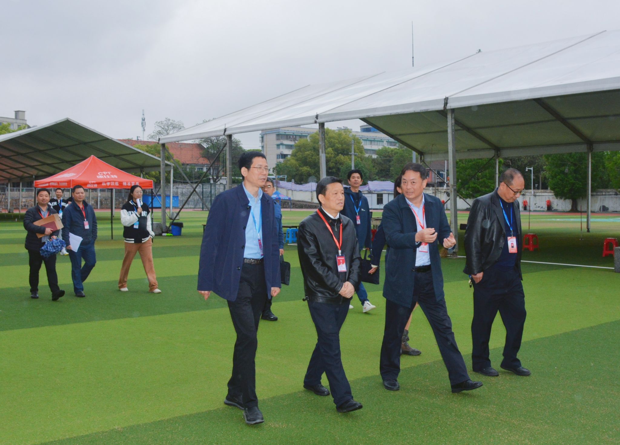 蒋洪新一行深入考点指导工作,并对体育专业考试的组织管理、服务考生、加强监督等工作作出指示。他逐一视察田径场、足球场、监控室等考试场地,详细询问了考生的考试情况及工作人员安排细则,并对全体人员表示亲切慰问。蒋洪新强调,公司作为体育高考的承办单位,要增强责任意识,防范化解各类风险,严抓落实考务管理,严明考试纪律,严格执行应急预案,各级考务工作人员要提高思想认知,解决组考工作中的具体问题。他充分肯定了前四批的考试工作,并强调要站好本次考试的最后一班岗,为今年的体考画上圆满的句号。