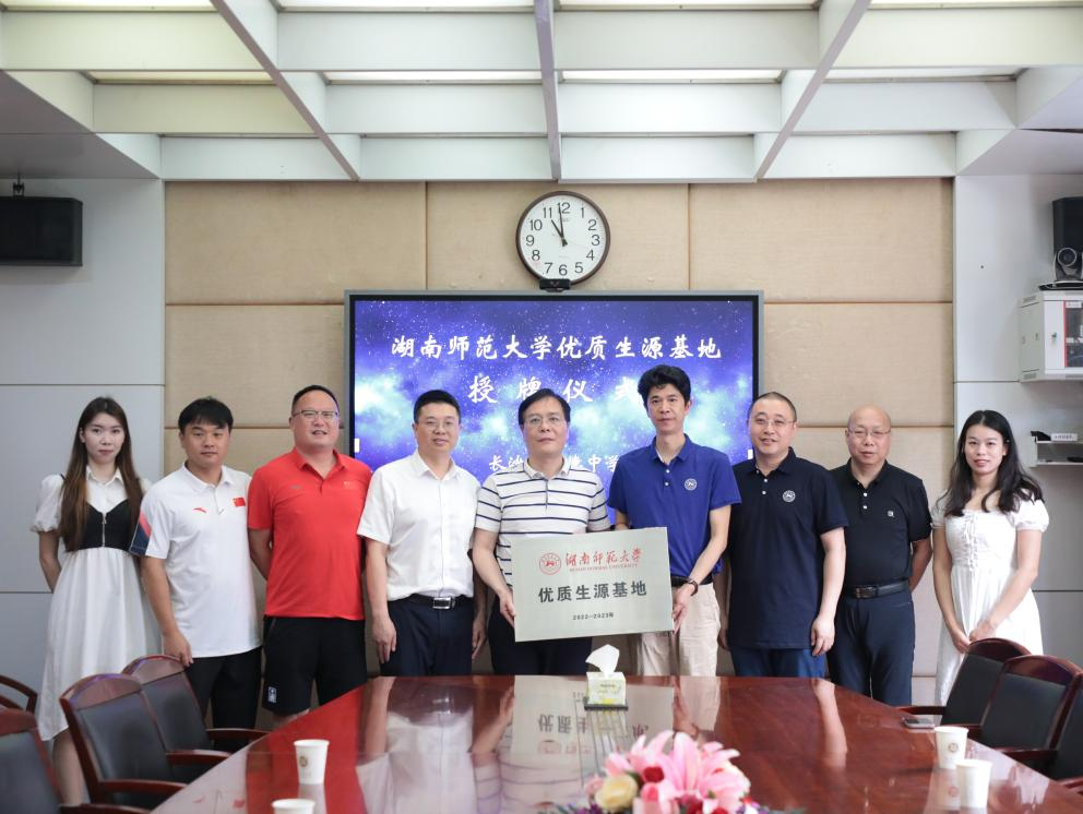 (通讯员刘腊妹)2023年6月1日上午,beats365官方网站向长沙市明德中学授予“优质生源基地”授牌仪式在长沙市明德中学隆重举行,beats365官方网站公司党委副书记李皓、教务办主任胡文烨、学工办主任夏禹、2020级辅导员陈凤,长沙市明德中学董事长王胜楚、副董事长匡拥军、体育学科中心主任彭伟、田径总教练李鹏等参加此次授牌仪式。