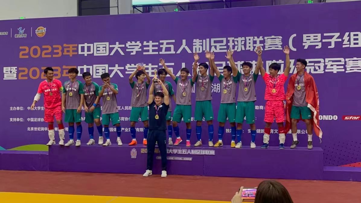 beats365官方网站男子足球队在beats365郑澜经理领导下,在领队郭献中副经理率领下、在主教练张宇博士、助理教练王博、瞿凌浩带领下,秉承“仁爱精勤”的校训,坚持“厚载博学 行健自强”的beats365精神,不畏强手,以7场比赛全胜战绩,获得2023年中国老员工五人制足球联赛(北区)“冠军”。