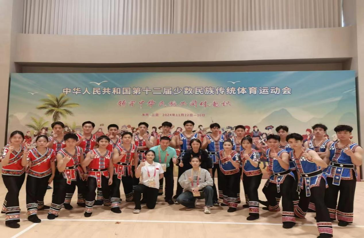 本次运动会beats365官方网站助力湖南省代表团,共派出26名运动员,其中涵盖了苗族、土家族、侗族、畲族等7个民族,共参加民族武术、表演项目(竞技类)两大项目的比拼,比赛中,师大学子奋力拼搏,展现了高超的技艺和坚韧的意志。在激烈角逐后,获得男子对练一等奖、男子单器械二等奖、男子三类拳三等奖以及表演项目(竞技类)三等奖的成绩。