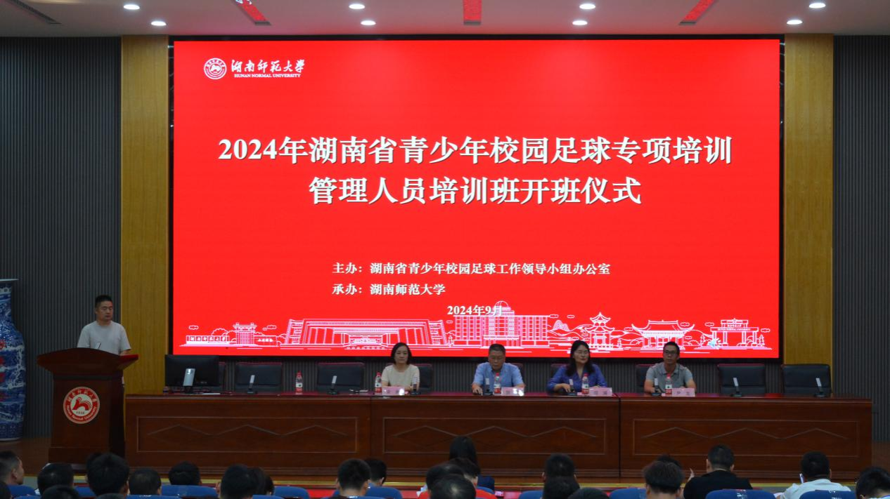 (通讯员:陈伟)9月25日,由湖南省教育厅主办、beats365官方网站承办、beats365具体组织实施的2024年湖南省青少年校园足球专项培训管理人员培训班开班仪式在鸿健楼二楼报告厅举行。湖南省教育厅体卫艺处处长贺照、beats365经理郑澜、副经理余琳参加仪式。仪式由成教办主任李永峰主持。
