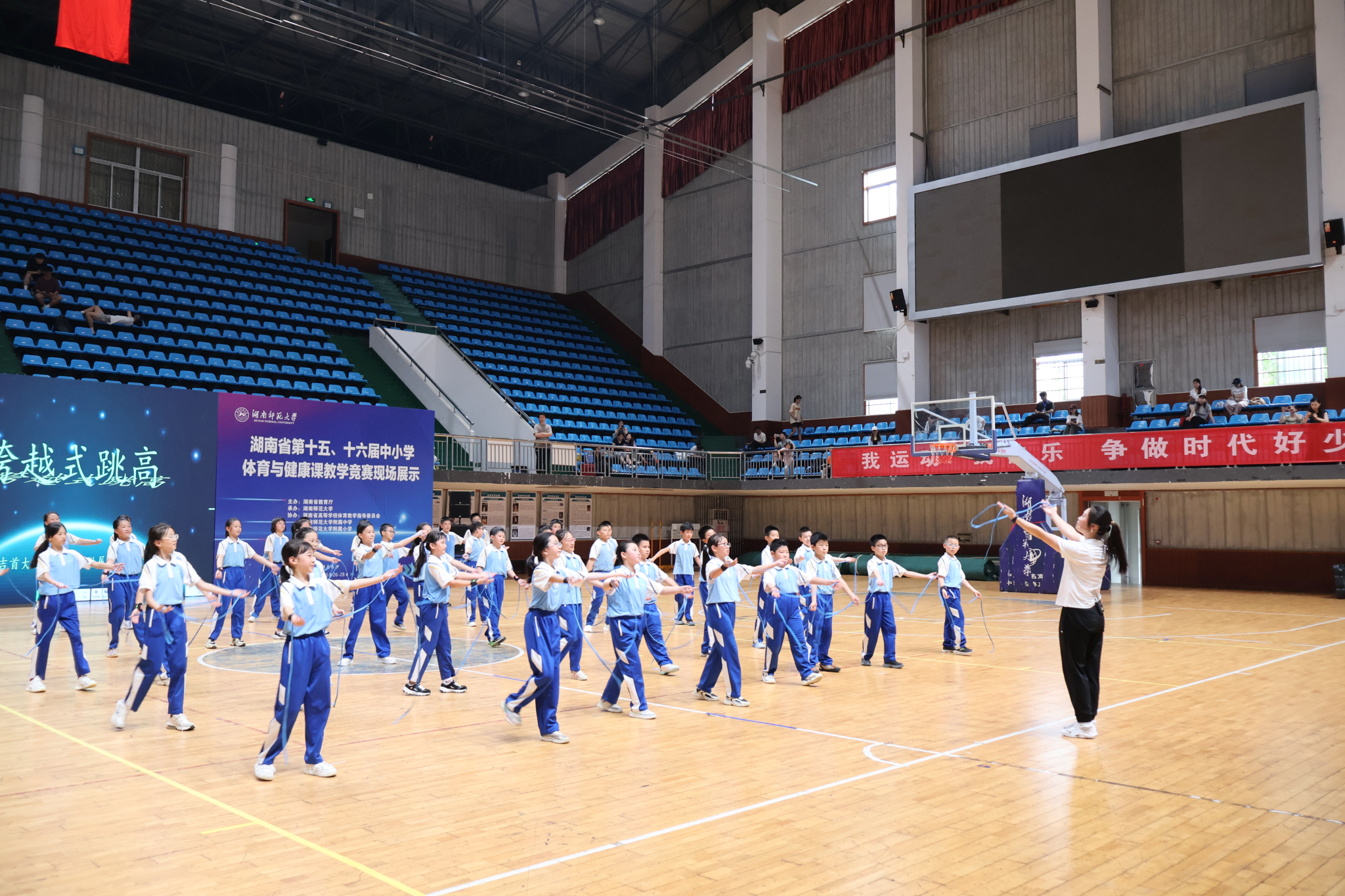 次日,该活动分别在公司田径馆和行健馆开展。beats365官方网站附属中学刘嘉琪执教《爵士啦啦操组合》、湖南师大附中芙蓉中学毛林华执教《网球原地正手击拍挥球》、通道侗族自治县第一中学杨怀军执教《短跑的素质练习》、娄底市第一中学附属星星中学肖瑞雅执教《立定跳远(三)》、长沙高新区明德麓谷中学肖瑶执教《快乐律动—节奏体语》、湘潭市湘乡市月山镇中学肖佩执教《蹲踞式跳远之腾空步》、湘潭大学附属实验公司唐锡斌执教《篮球单手肩上传球》、沅江市芙蓉公司李胜执教《趣味障碍跑》、吉首大学教育公司附属小学刘玄执教《跨越式跳高》、长沙市砂子塘吉联小学刘靖宇执教《篮球持球交叉步突破》。